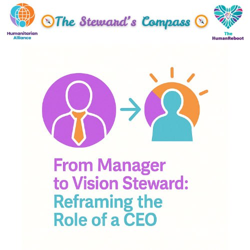 The role of a leader is shifting. No longer is the CEO—or Humanitarian Projects Director—merely a manager of tasks and resources. In today’s age of soulful Leadership, the role of the CEO is changing and is set to become a Vision Steward: one who holds the higher Purpose, nurtures people, and guides projects with wisdom and alignment.